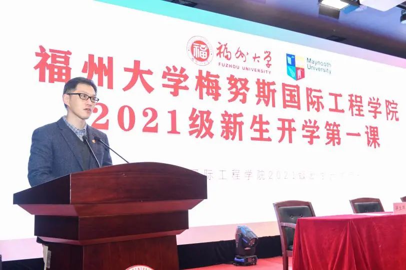 爱尔兰国立梅努斯大学Aidan Mulkeen副校长通过视频录播向各位新生致辞,并鼓励同学们积极融入英文环境,尽快适应国际化学习状态,夯实专业基础,并祝愿各位同学未来能在领先技术行业中创造价值,做出奉献。