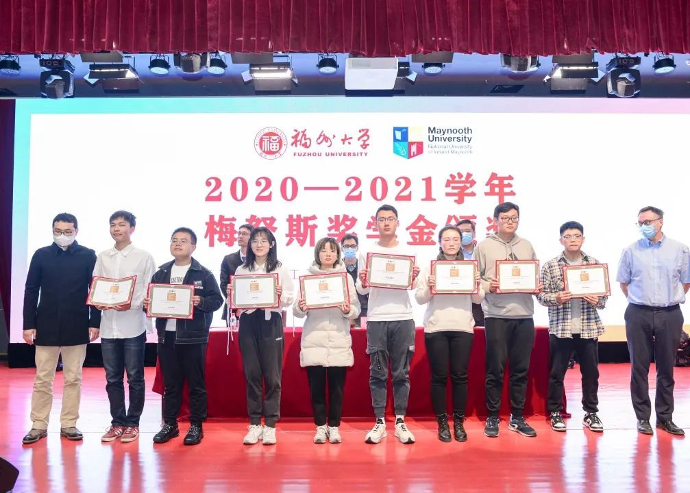 随后,进行了2020-2021学年梅努斯奖学金颁奖仪式,该奖项是梅努斯大学设立,用于表彰在上一学年考试中取得优异成绩的学生。方捷副院长宣读了获奖学生名单,并对这些同学表示祝贺。获奖同学依次上台,Chris Roadknight和Siyuan Zhan两位老师代表梅努斯大学为8位同学颁发获奖证书并与其合影留念。颁奖仪式旨在表彰先进,同时鼓励2021级新生向优秀的学长学姐们看齐,认真学习,踏实走好每一步!