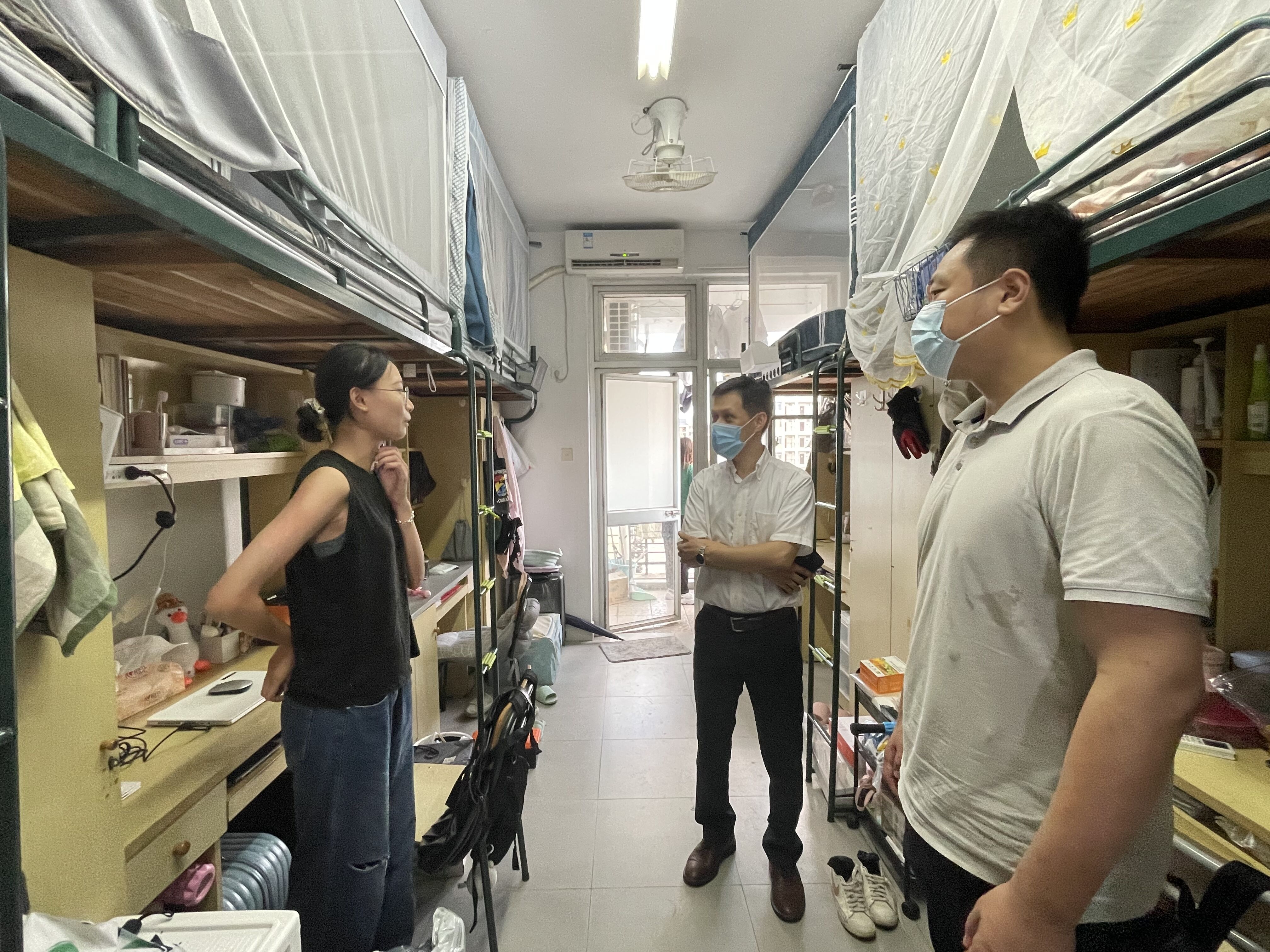 宿舍是人员密集区,院领导多次叮嘱同学们在宿舍内需保持卫生整洁,遵守学校宿舍管理规定,不使用违规电器,努力营造安全、有序的良好宿舍环境。在了解到1号楼顶层宿舍未装置隔热层、空调制冷效果较差等问题时,院领导当即讨论商量解决方案,争取为91社区学子提供较为舒适的学习生活环境。在和同学们的聊天中,91社区领导
