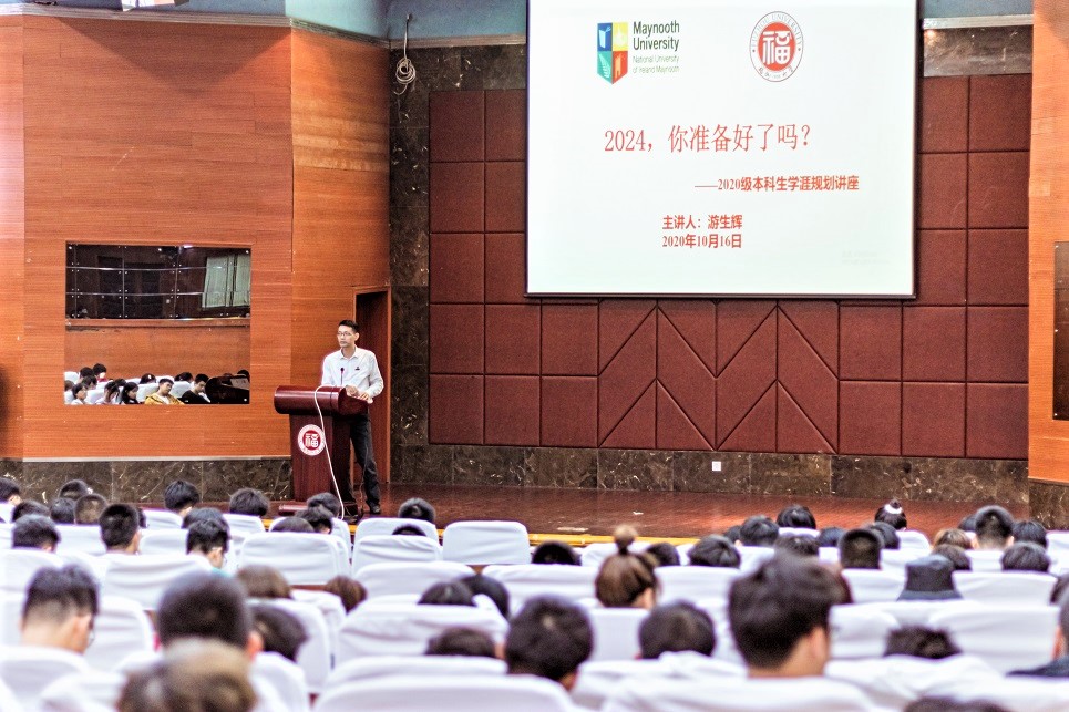 副院长游生辉走进嘉锡楼嘉曦厅,为学院全体2020级新生主讲学涯规划讲座。