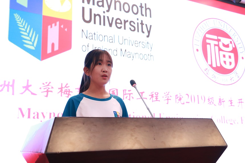 深化合作,致力于为学生提供多元化的教育体验;期盼大家通过四年大学生活,锻炼理解能力、学会乐于助人、发展良好的专业技能。随后,外方教师代表Kyriaki·Niotaki(卡里亚基·尼欧塔基)女士和新生代表张伟同学相继发言,分别鼓励新生们努力学习、健康成才,为社会贡献自己的青春力量;希望新生们将“明德至诚 博学远志”的校训精神内化于心,少些浮躁多些踏实、少些安逸多些拼搏、少些自我多些家国情怀,成就更优秀的自己。