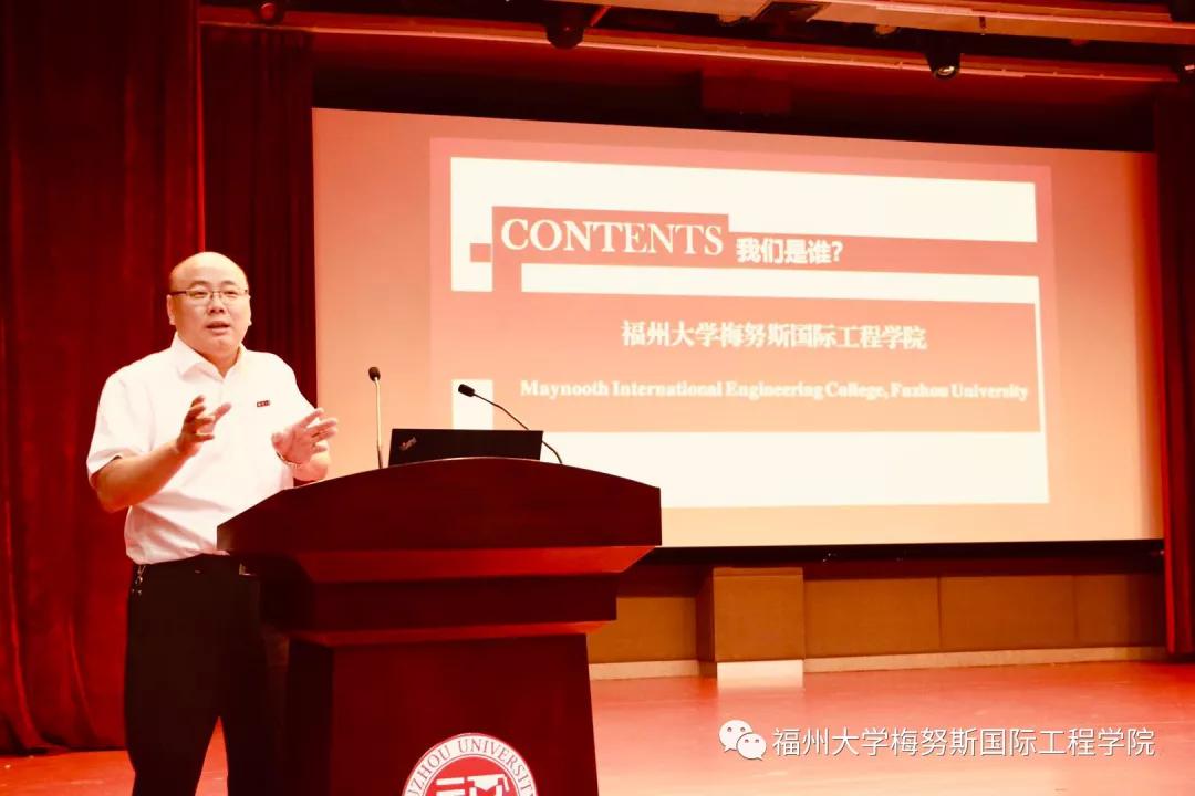 副校长、学院院长王健教授,爱尔兰国立梅努斯大学副校长Ronan·Reilly教授,学院副院长林瑞全教授分别向新生家长致辞并介绍合作双方学校及学院有关情况。
