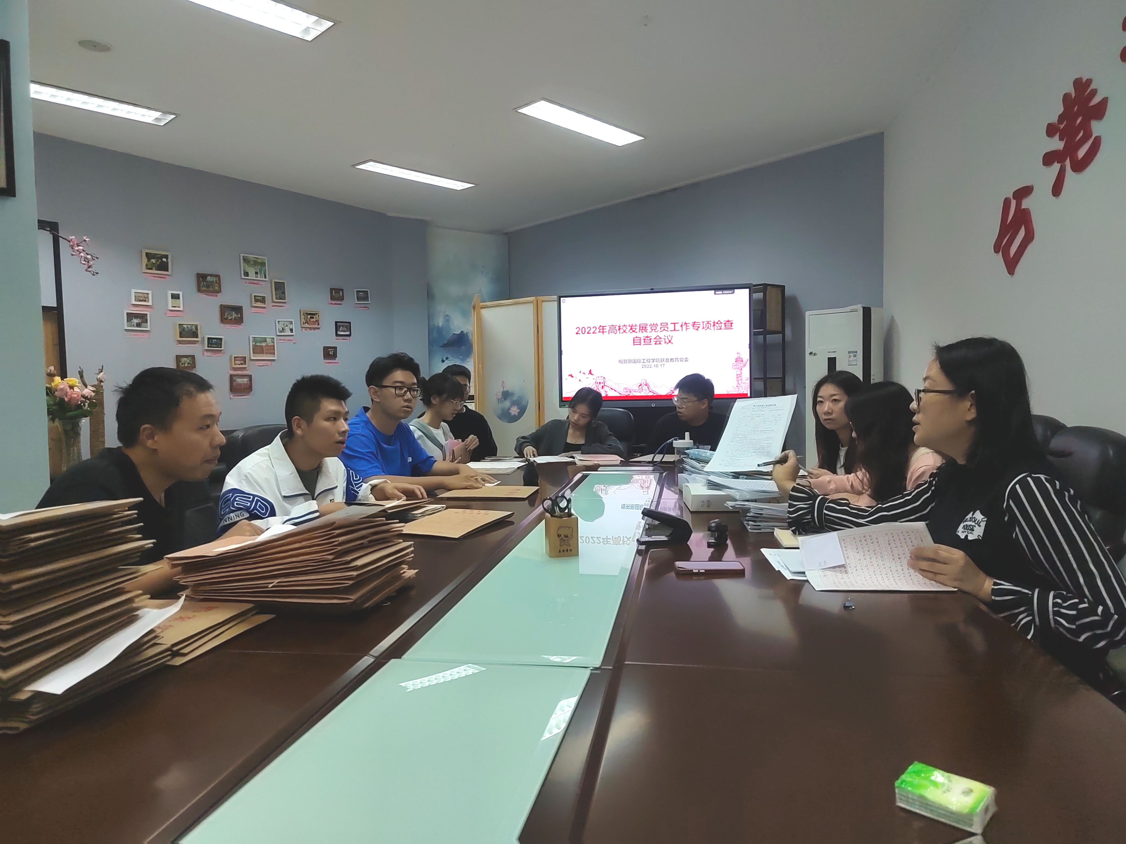 根据校党委组织部关于开展2022年发展党员工作自查的通知,为进一步规范发展党员工作、提高发展党员质量,迎接全省发展党员工作专项检查,联合教育党委于10月17日召开2022年高校发展党员工作专项检查自查会议,对发展党员工作进行全面自查。联合党委组织员李清霞老师、各年级辅导员、各支部书记等一同参加。