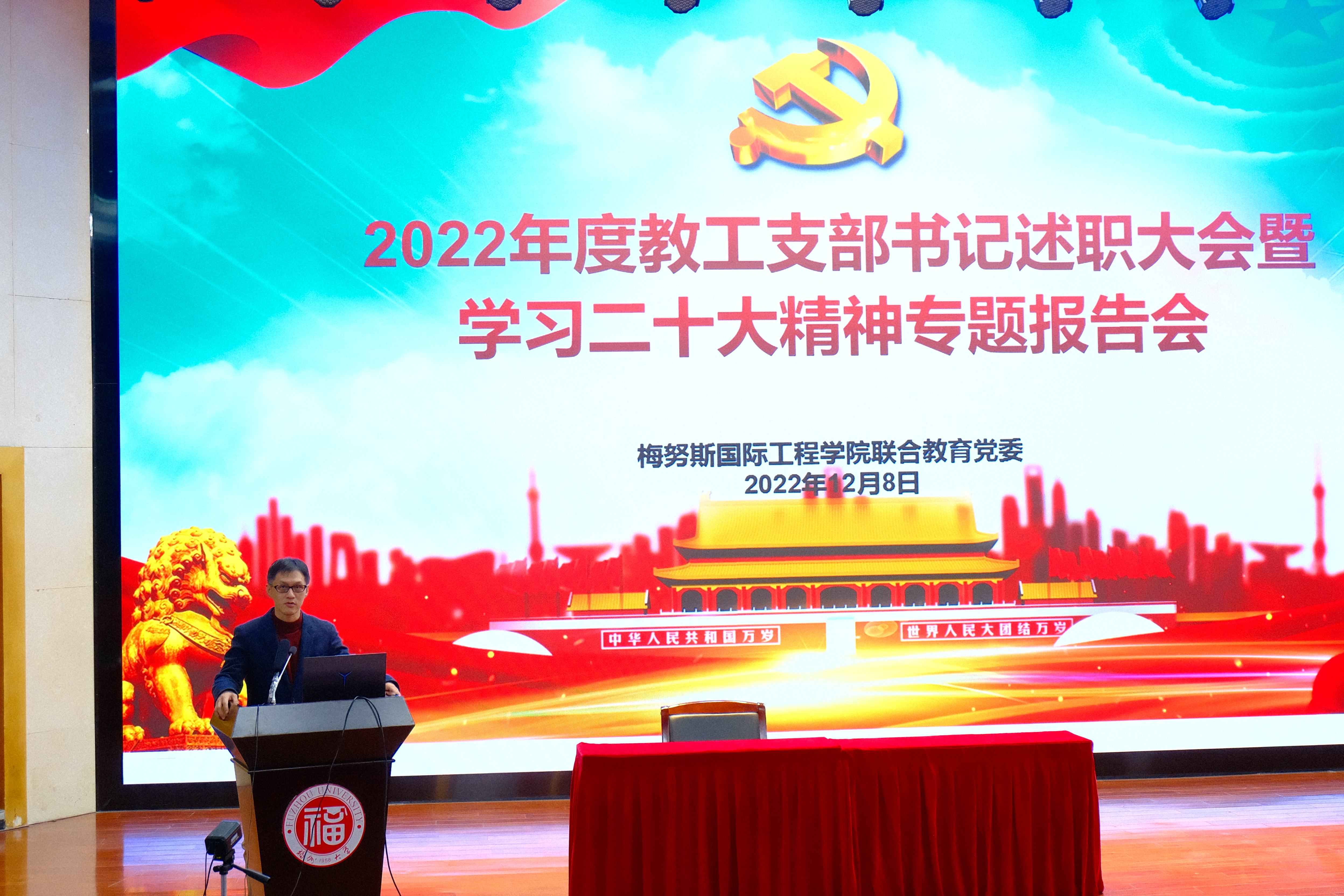 联合教育党委2022年度教工支部书记述职大会暨学习二十大精神专题报告会在校模拟法庭顺利召开。校党委统战部部长林新辉老师,党委组织部副部长阙璧君老师,校纪委综合室副主任林元新老师出席了本次会议。91社区